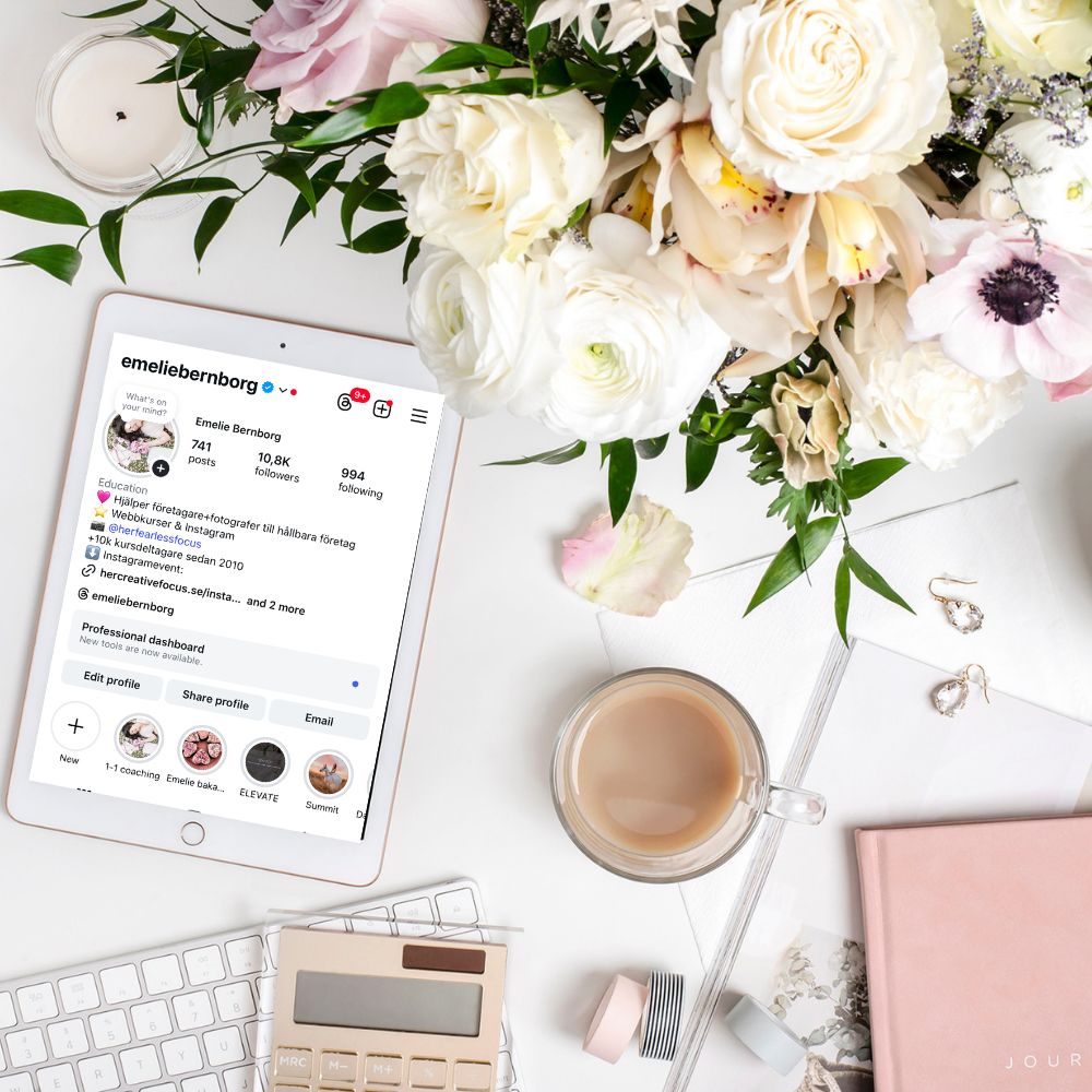 - 💛 LIVE COACHING: 6 st. 60 min Live Q&A + feedback med Emelie Bernborg, nischat för Instagram.