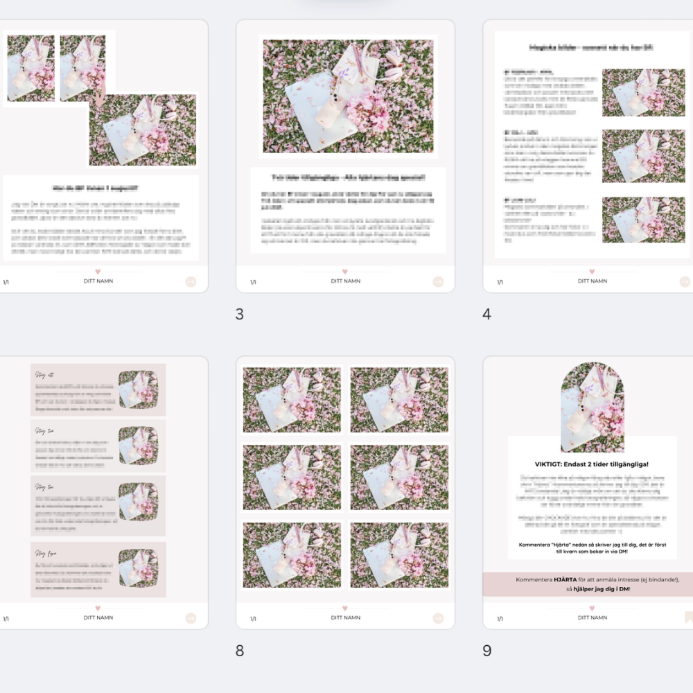 Fotografen Charlotte @cantica.charlotte är en av mina deltagare som använde en karusellmall som jag tillhandahöll i mitt mentorskap för fotografer. I programmet fanns också en utförlig struktur och strategi för att få in fotobokningar via Instagram, och feedback.
