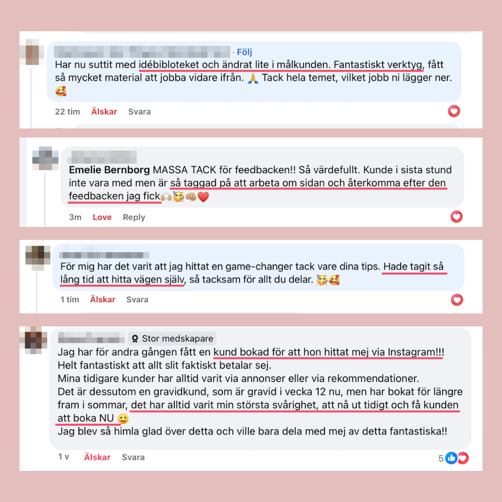 - 💛 LÅST FACEBOOKGRUPP: Utmaningar och accountability för att få inlägg gjorda och få pepp och stöd.