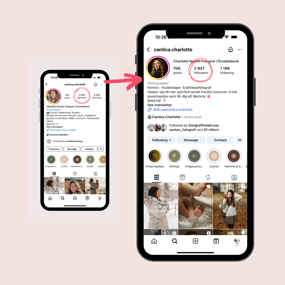 Du behöver inte tusentals följare för att börja dra in bokningar och få kontot att växa, men du behöver RÄTT följare, och det går vi in på på djupet, i Instagramprogrammet.